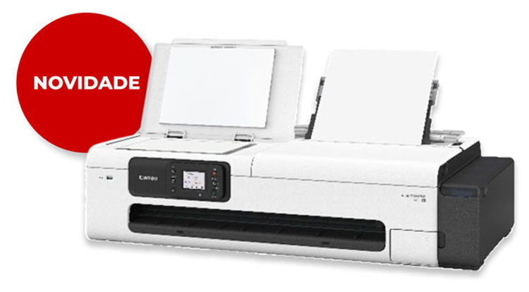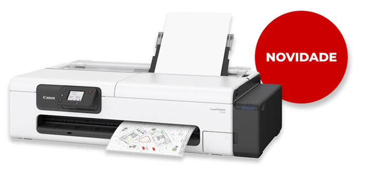 A imagePROGRAF TC-21/M apresenta melhor capacidade de manuseamento de papéis, um painel de operação inclinável e impressão sem margens num design ecológico